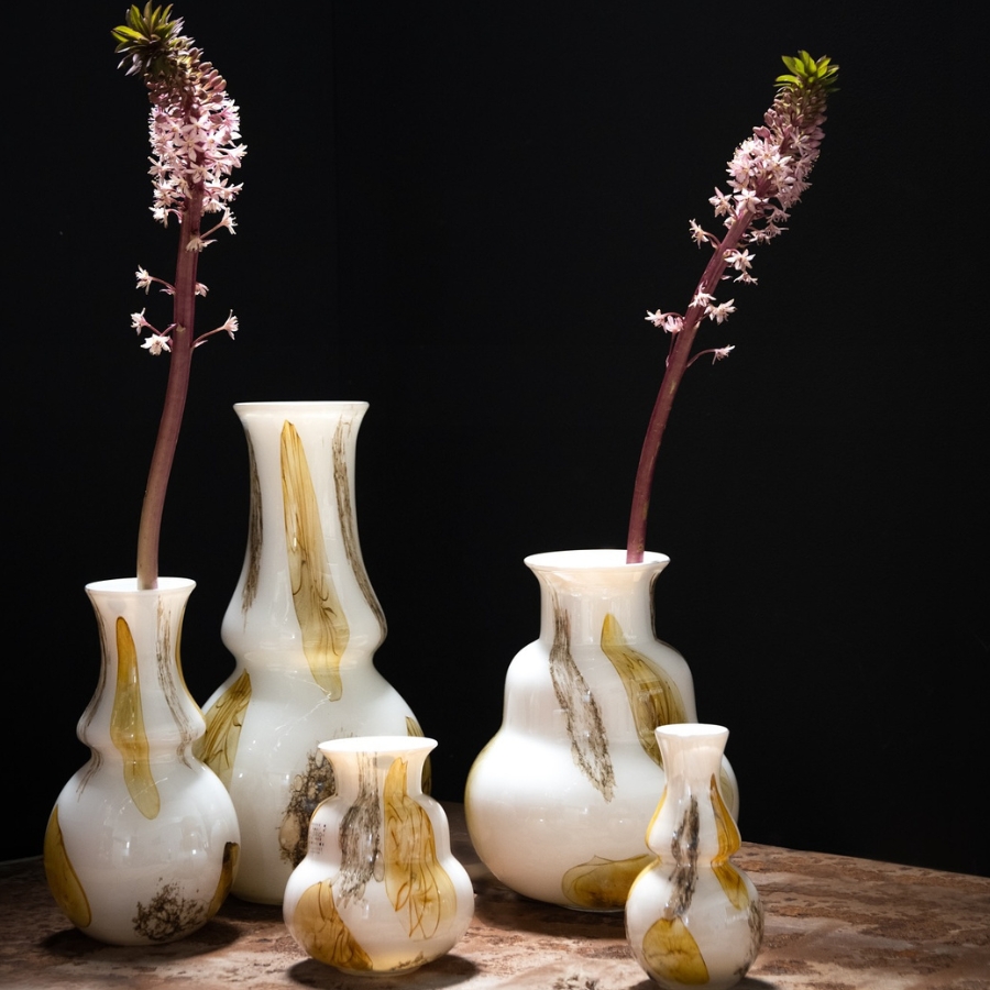 Cette verrerie soufflée à la bouche est conçue pour donner plus de force, d’équilibre et de caractère aux compositions florales.
